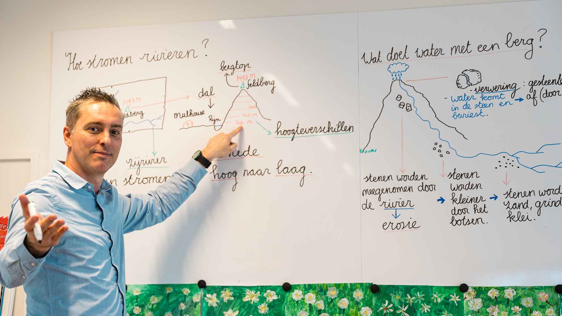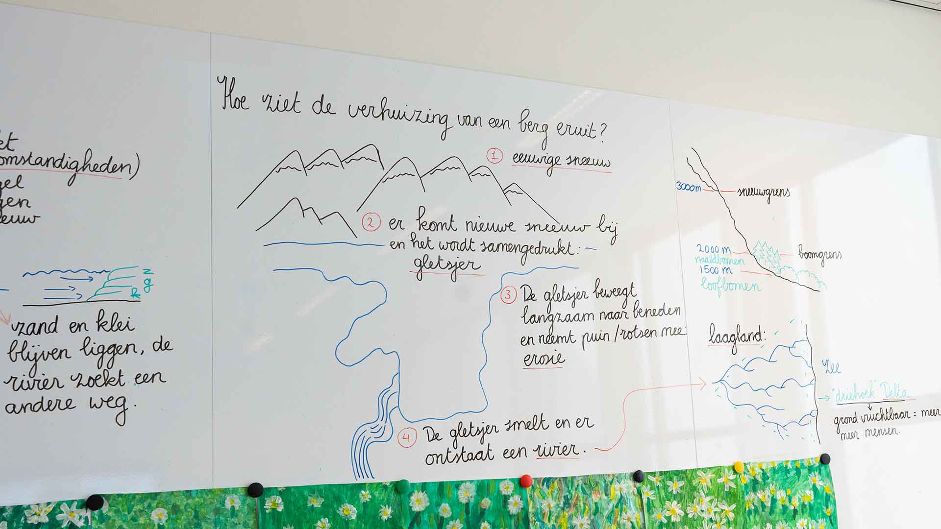 An der Grundschule De Drie Koningen in Meern testen sie auf clevere Weise, was die Schüler sich merken. An der Rückwand des Klassenzimmers hängen Tafeln mit Informationen. Während des Unterrichts drehen sich die Schüler um und erhalten eine Aufgabe, bei der sie etwas zeichnen oder beschreiben müssen, zum Beispiel was auf verschiedenen Höhen eines Berges wächst. Dies fördert aktives Denken und Gedächtnis. Nachdem sie ihre Aufgabe abgeschlossen haben, drehen sich die Schüler wieder um und vergleichen ihre Arbeit mit den Informationen auf den Tafeln. Dies bietet sofortiges Feedback, sodass sie sehen können, was sie behalten haben. Dieser Ansatz fördert kritisches Denken, macht das Lernen dynamischer und steigert das Engagement der Schüler.