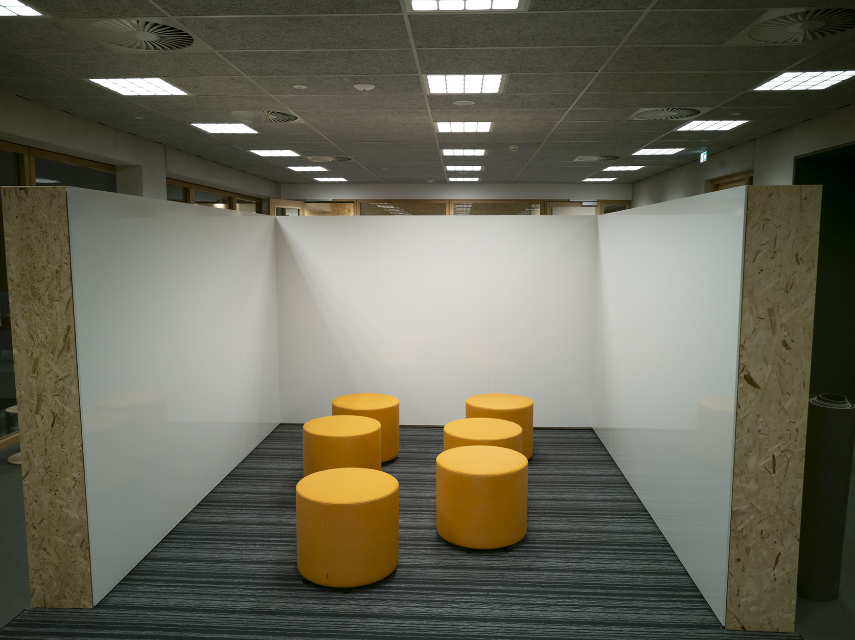 Various setups, from classroom to consultation space for project teams. This college originally had foil boards that were increasingly difficult to keep clean. After an initial trial installation with Chameleon whiteboards, this college now opts for a lifetime cleaning guarantee. Several branches are now fully equipped with more than 1000 m2 Chameleon whiteboard surface.