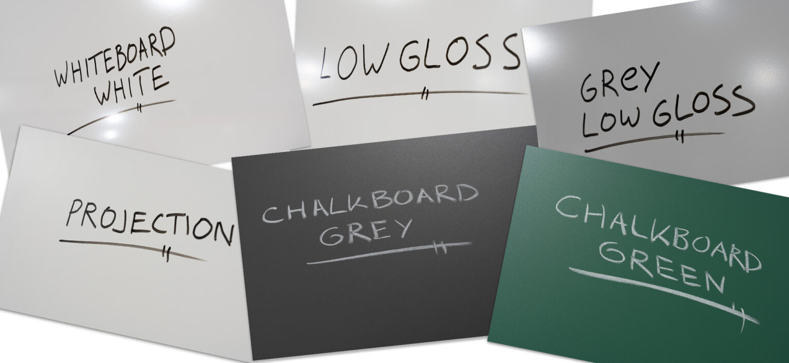 The choice between Whiteboard White, Low Gloss, Projection, Chalkboard Grey, and Chalkboard Green depends on your specific needs and the environment in which you will use the board.