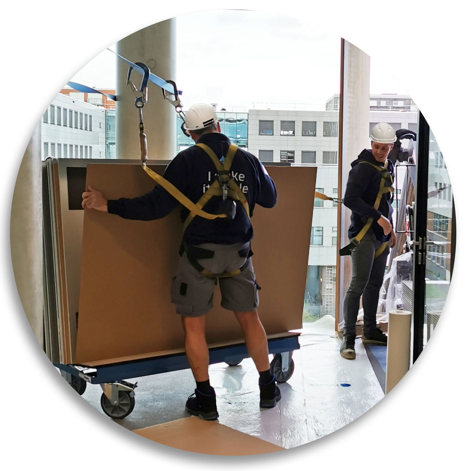 Les panneaux sont également transportés jusqu’à l’emplacement final sans emballage, avec seulement un panneau intermédiaire réutilisable. La quantité de déchets d’emballage est ainsi réduite à zéro. Il n’est donc pas nécessaire de procéder à un tri ou à un recyclage, ce qui permet d’obtenir la note BREEAM complète. Par ailleurs, nous appliquons le tri des déchets de plastique, de bois, de carton, de métaux et d’autres matériaux en totale conformité avec la certification ISO14001:2015.