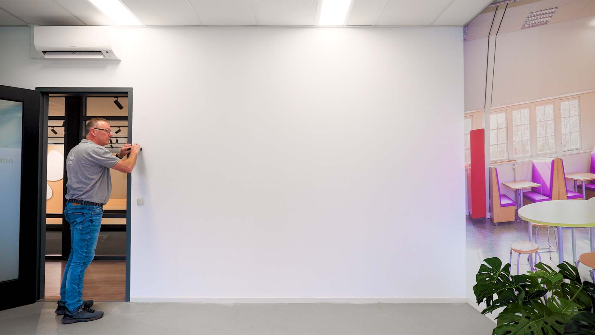 Mesurez le mur du sol au plafond à plusieurs endroits. Soustrayez 20 mm de la hauteur — cette petite marge garantit que votre mur d’écriture du sol au plafond s’adaptera parfaitement, même si le mur n’est pas parfaitement droit. Notez la hauteur la plus courte mesurée, y compris la déduction de 20 mm, sur le formulaire de mesure.