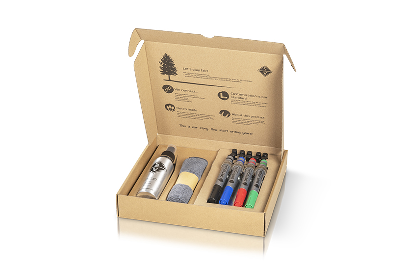 Elk onderdeel van de Deluxe Starterkit is magnetisch. Stiften, wissersprays en microvezeldoekjes kunnen daardoor overal op het whiteboard* gehangen worden. Microvezeldoekjes zijn de meest effectieve en makkelijke manier om mee te wissen. Bovendien zijn deze magnetische doekjes gewoon uitwasbaar.