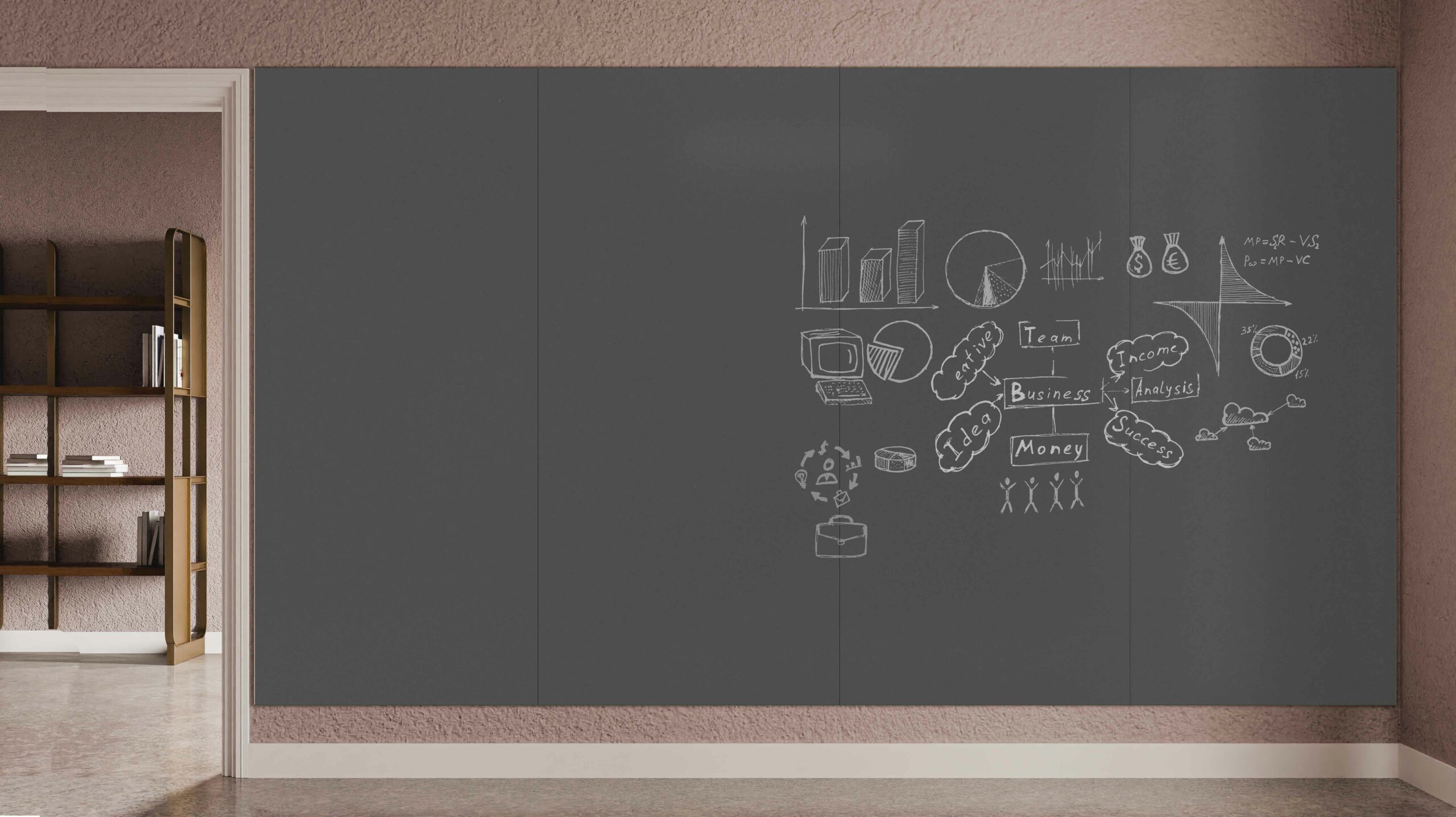 - Voor school en kantooromgevingen: Krijtbord grijs biedt een modern klassieke uitstraling waarbij met krijten nuances in bordwerk aangebracht kan worden.