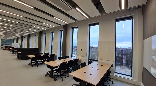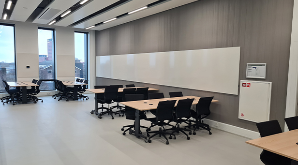 Chameleon schrijfborden draagt bij aan het succesvol functioneren van deze omgeving. De schrijfborden zorgen voor grote schrijfoppervlakken die studenten en docenten voldoende mogelijkheden bieden om individueel en in groepsverband te werken. De schrijfoppervlakken zijn van 1,5 tot zelfs 9 meter in de breedte.